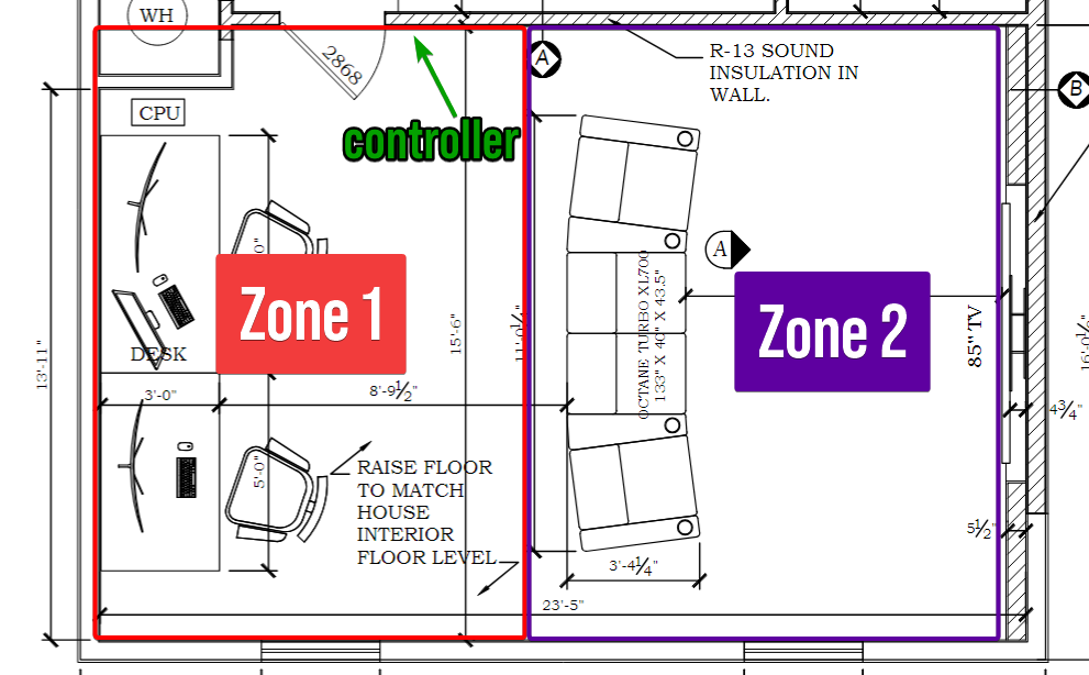 Precisely positioning elements like the lights, seating, TV, speakers was highly important. I spent hours measuring and researching to make sure everything was exactly where I wanted it to be, such as the speakers being set up according to the Dolby Atmos 5.1.2 Overhead Speakers Setup Guide.