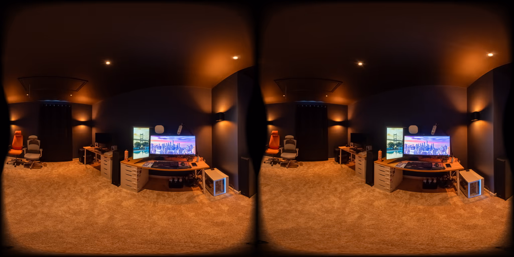 My wife and I have our gaming rigs next to each other on desks opposite the TV wall. I highly recommend this setup.