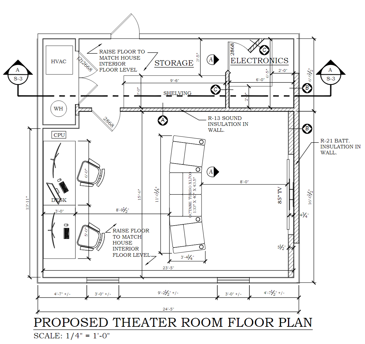 With ROCKWOOL Safe 'n' Sound insulation, two solid-core doors between the theater and the rest of the house, and thick, 5/8" Gold Bond SoundBreak XP Fire-Shield Gypsum Board comprising the partition wall, the theater is virtually soundproof.